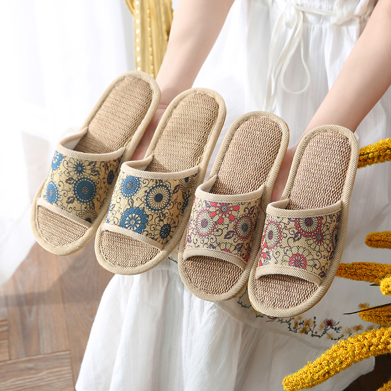 亜麻スリッパ室内スリッパ木床一字静音滑り止め厚い底夏サンダル男女