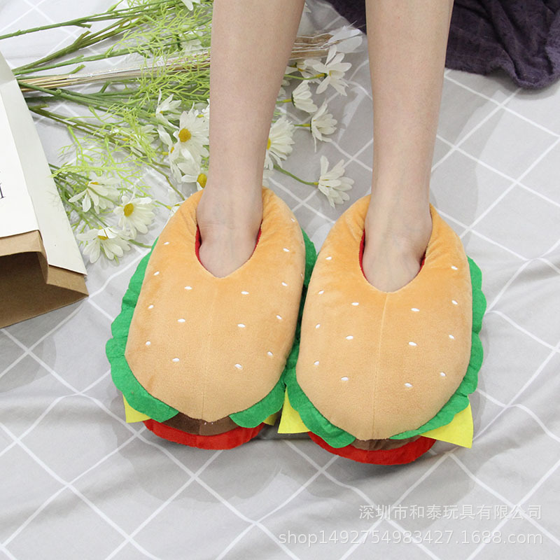 アイデアの新しい趣味ハンバーガーのぬいぐるみの靴のスリッパのカップルの家の保温の床の包みとプレゼントの綿のモップ