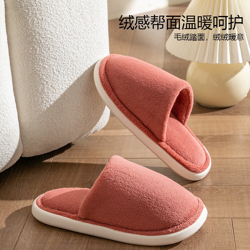 無地のウール製室内用木製床用防水・滑り止め・静音・男女兼用・カップル用・保温綿スリッパ・コーラルベルベット