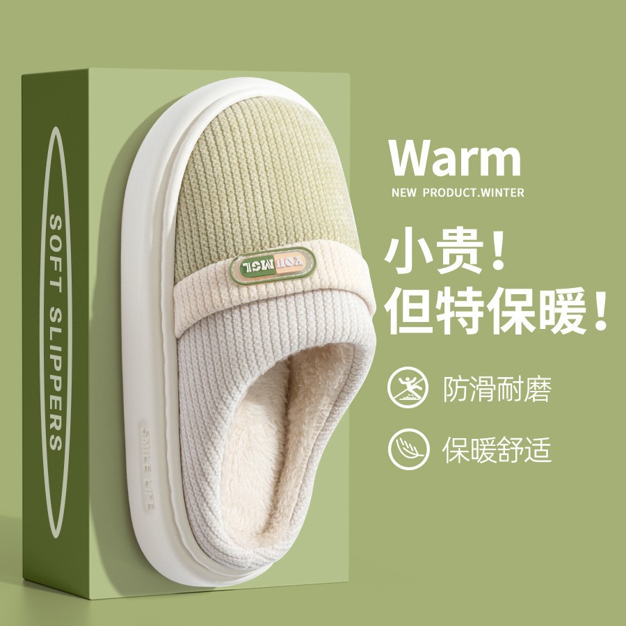 新しい家のクリスマスグリーン奇保温冬綿スリッパカップル男女の厚い底の柔らかい靴の厚い滑り止めはかわいいです。
