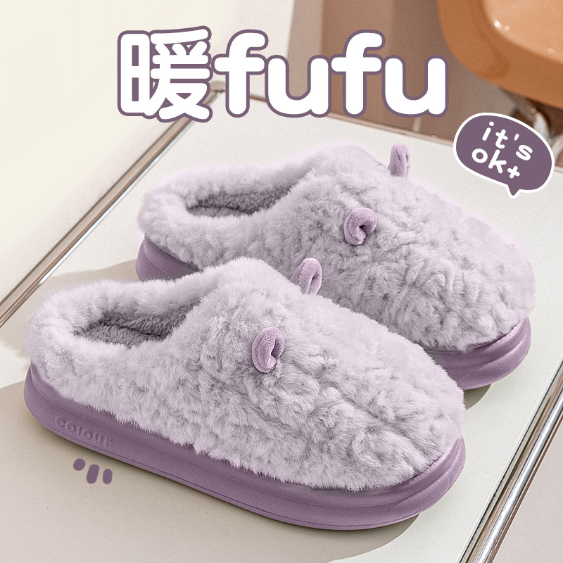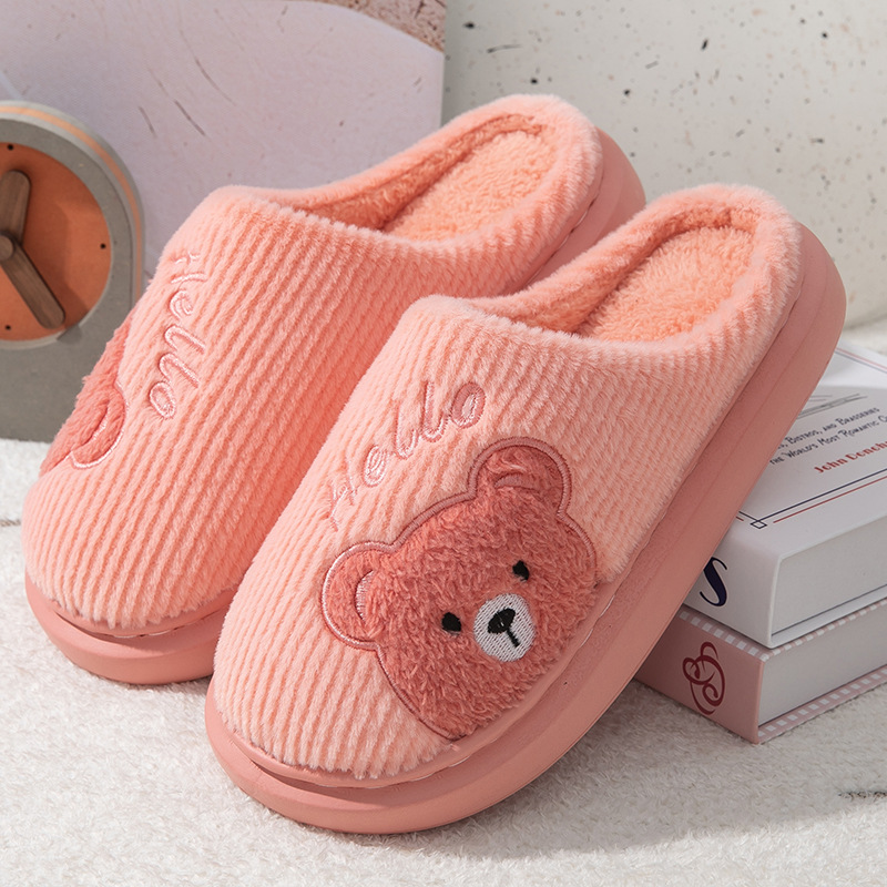 优调コットンスリッパ女性家室内滑り止め月子秋冬包頭が糞感を踏んでいるぬいぐるみ保温カップル男性