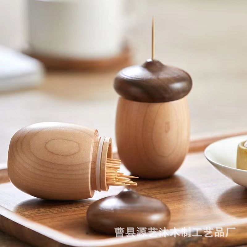 創意的な木製のつまようじ筒家庭用つまようじ箱のデスクトップ収納ケースつまようじ缶キッチンかわいい置物漫画おもちゃ