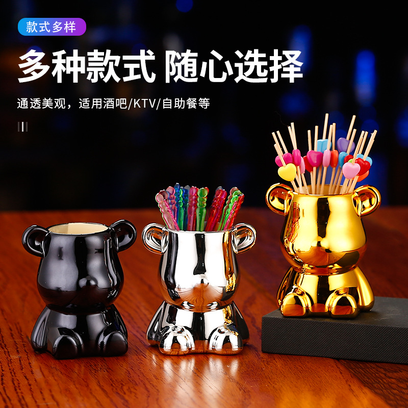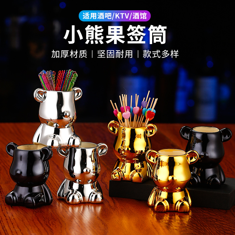 創意的なつまようじカップの熊の果物の署名の杯のバーのKTVは台の果物の署名の席の果物のフォークの杯のホテルのレストランのつまようじの筒を並べます。