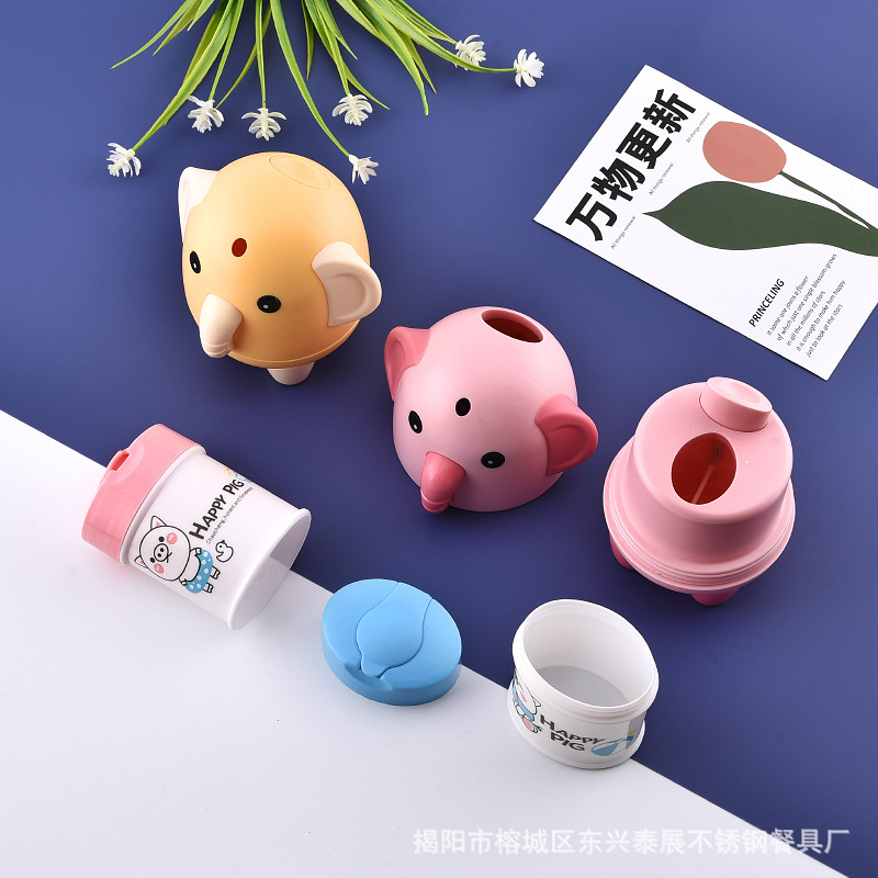 プラスチックのつまようじの筒のかわいいブタのつまようじの箱の漫画のぬいぐるみのアイデアのつまようじの箱はつまようじの筒を押して卸売りします。