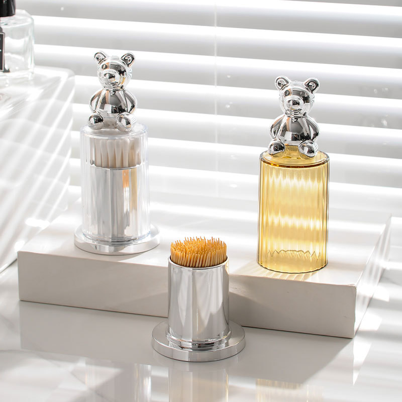 クロスボーダー高颜値熊楊枝筒アクリル楊枝箱創意楊枝筒家庭用綿棒歯線収納缶