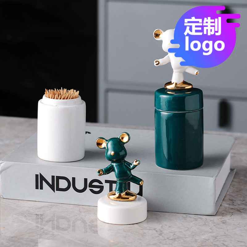 ディザトーン同モデル北欧軽豪華楊枝箱高颜値楊枝筒暴力熊収納缶歯糸綿棒楊枝箱