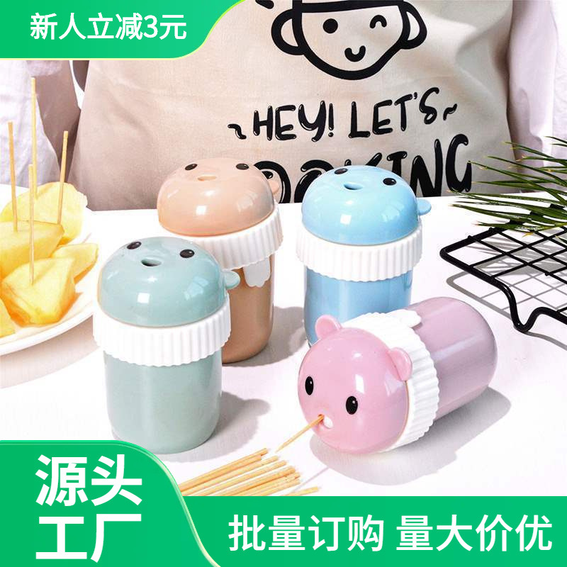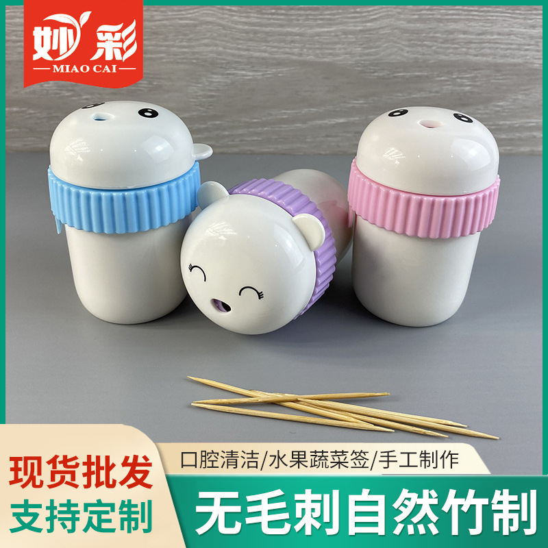 漫画の熊の缶のつまようじの瓶の簡単な漫画の客間のつまようじの筒の家庭用のプラスチックのつまようじの箱のメーカーは卸売りします。
