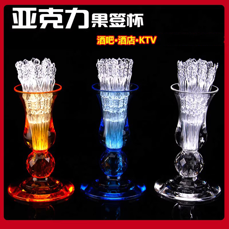 アクリルpc果署名カッププラスチックフルーツフォークカップ果署名カップバーktv高級カラー果署名座楊枝カップ
