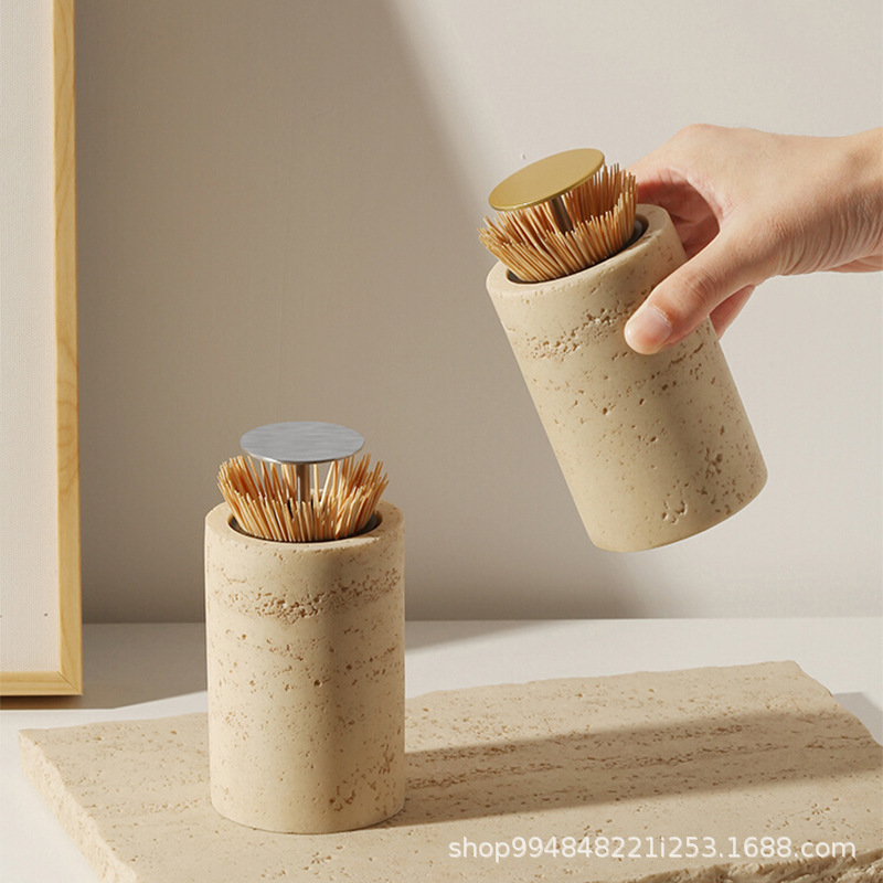 カルセドニーつまようじホルダー プッシュ式つまようじボックス 自動ポップアップ 家庭用 高級 クリエイティブ 高価値 軽い 高級つまようじ瓶