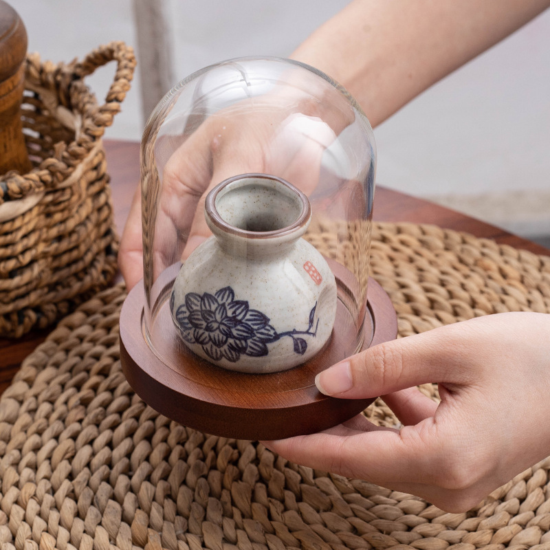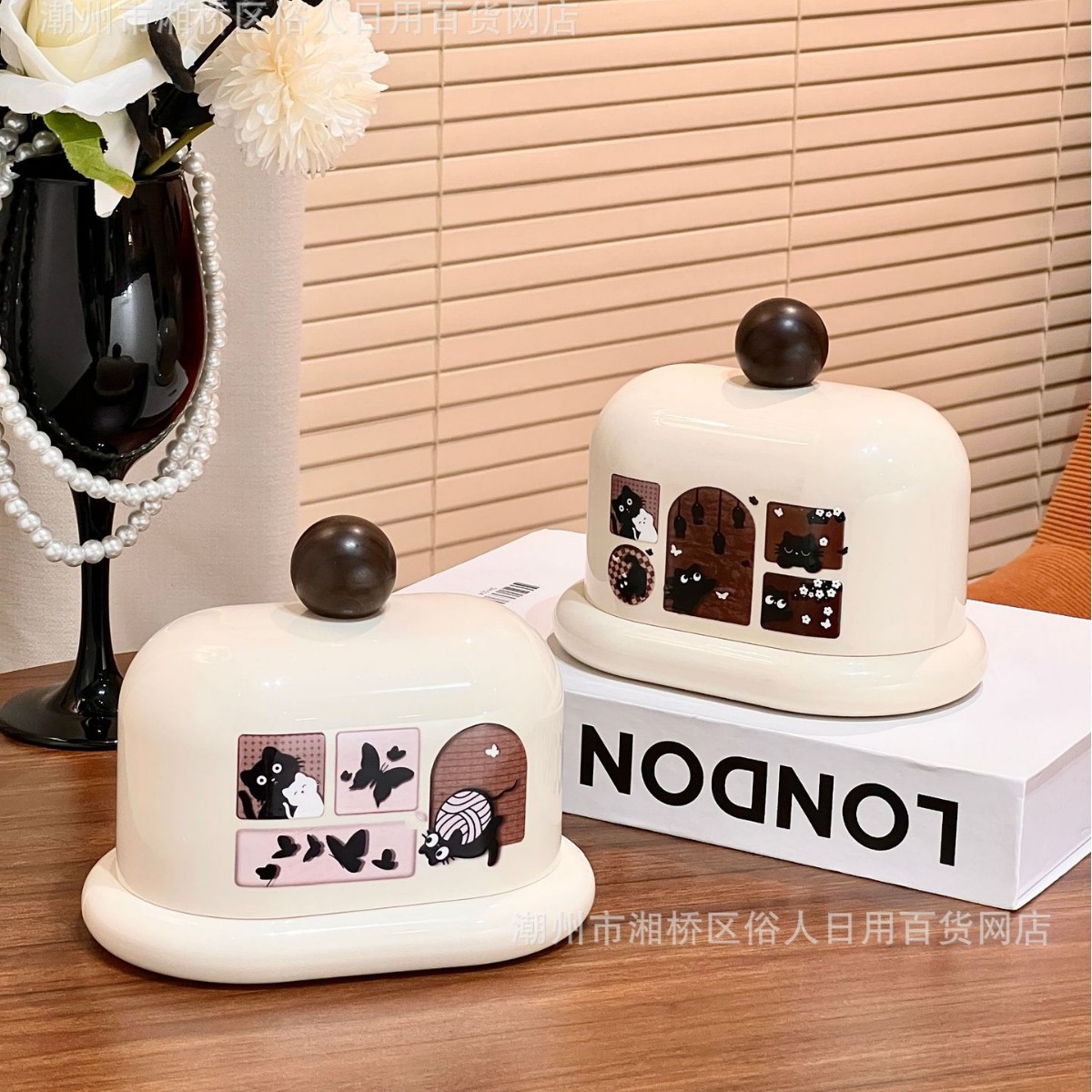 釉薬下彩陶磁器楊枝筒日本式ガラスカバー復古歯糸綿棒置物新中国中国潮個性缶