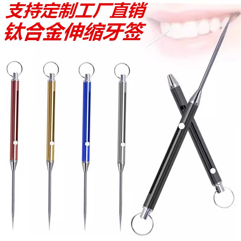 チタン合金のつまようじ携帯は歯の神器のスプリングを切って伸縮します。
