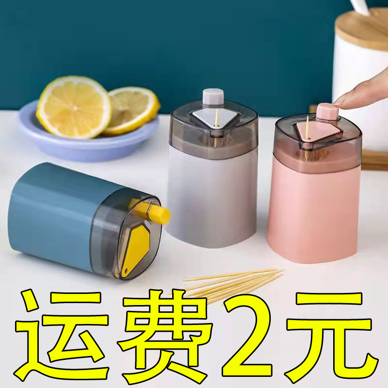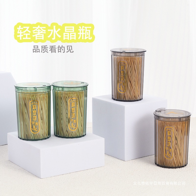 軽奢風つまようじ入れ 自動ポップアップ 家庭用プラスチックつまようじホルダー クリエイティブ 商業卸売 ポータブルつまようじ収納容器