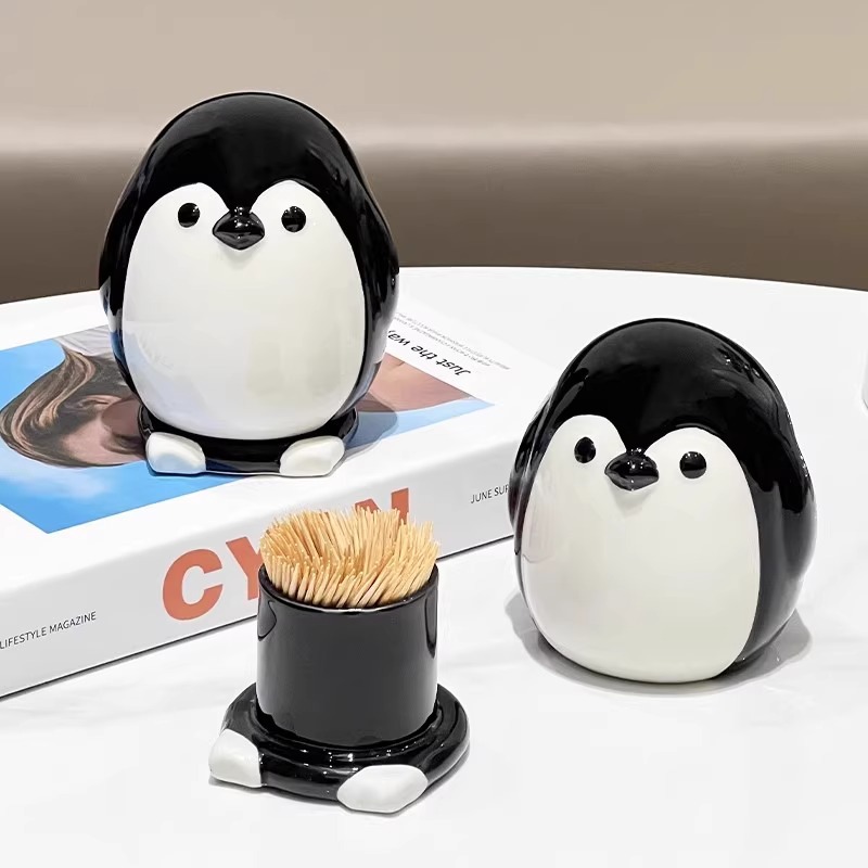 ペンギンのつまようじ箱家庭用軽豪華高級高颜値つまようじ缶収納箱創意的なつまようじ箱つまようじ筒