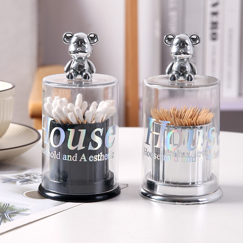 ネットの赤い顔の値の熊のつまようじの筒のアクリルのつまようじの箱のアイデアのつまようじの筒の家庭用の綿棒のつまようじの収納缶