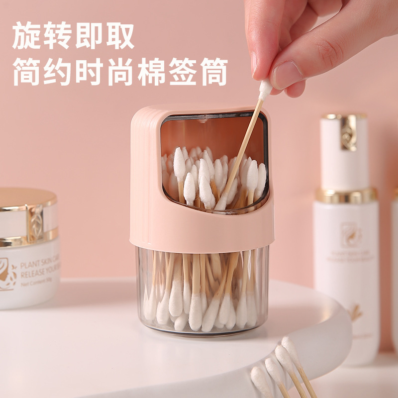 デスクトップラウンド綿棒ボックスメイク落とし綿収納ボックス透明つまようじボックスプラスチック回転綿棒チューブ蓋付き