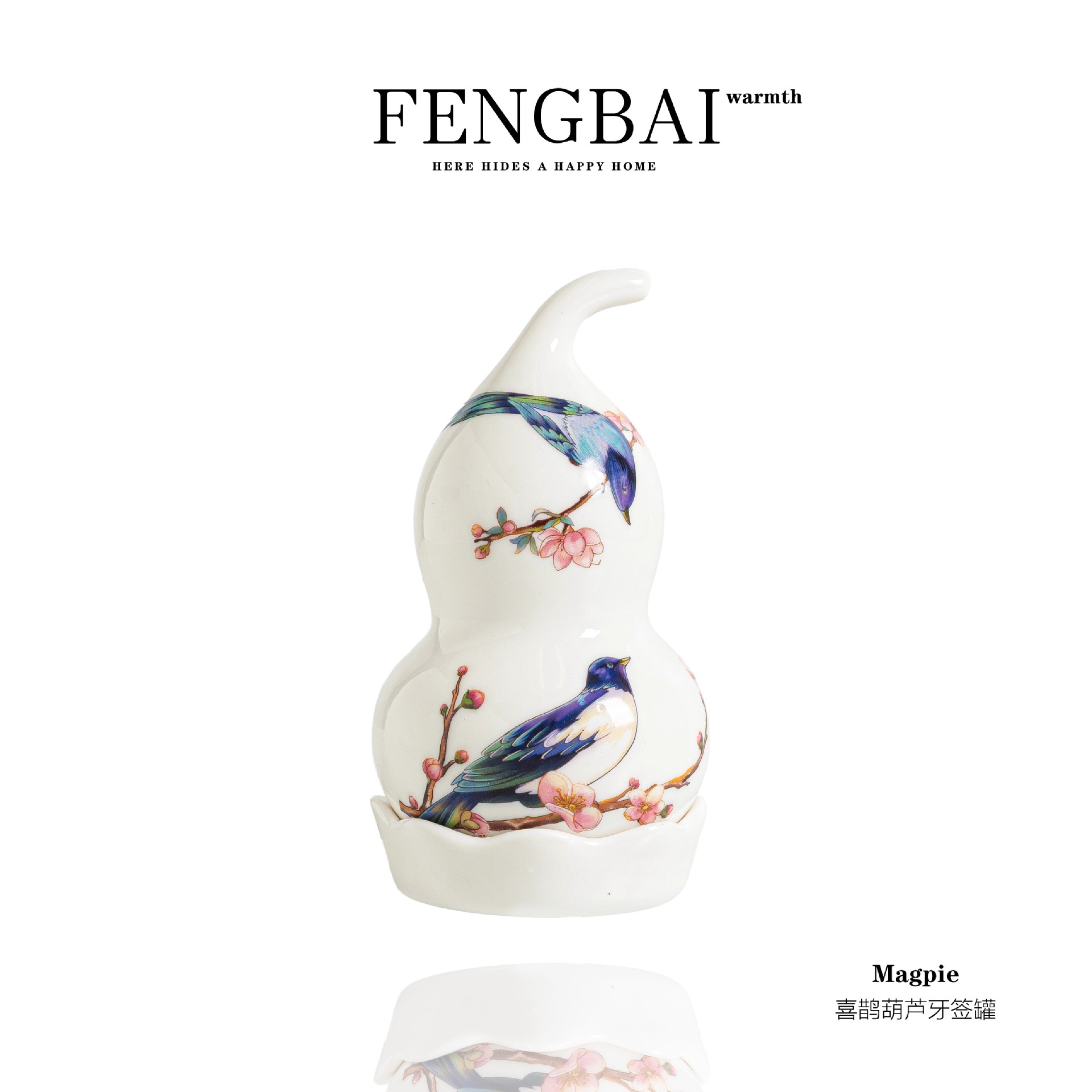 瓢箪のつまようじ缶の陶磁器のカササギは福の家庭の客間のレストランのつまようじの箱の大容量のまっすぐな筒の食卓の置物を送ります。