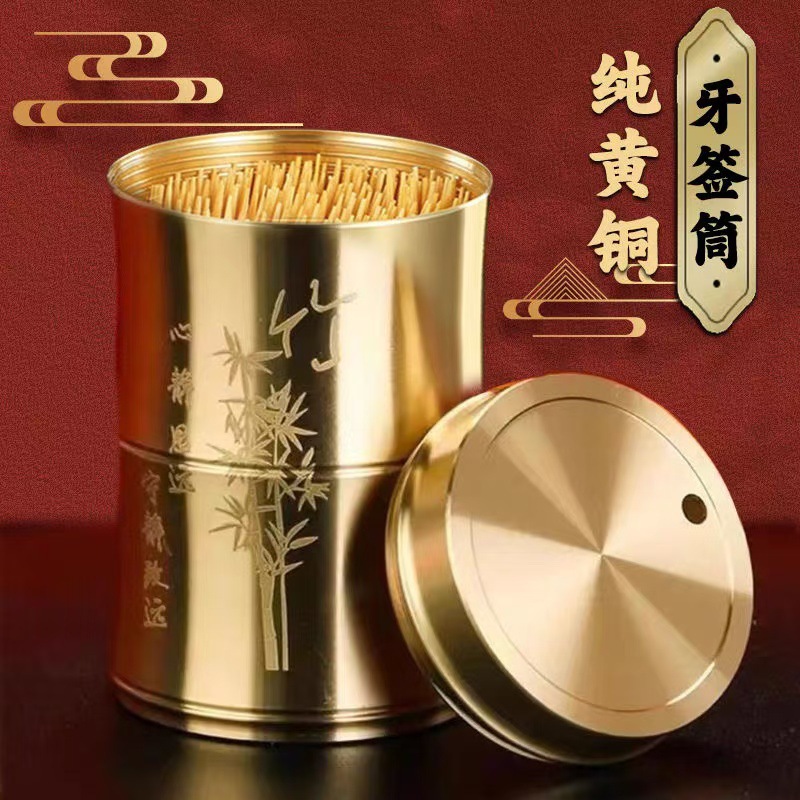 真鍮の楊枝箱創意家庭用楊枝桶防塵耐落下レストランホテル高級ホテル商用純銅楊枝