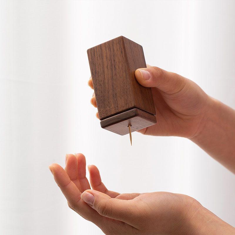 新しいアイデアは胡桃の木のつまようじ箱の家庭用客間のつまようじ筒のデスクトップのお茶の数防塵のつまようじの綿棒をまねて収納します。