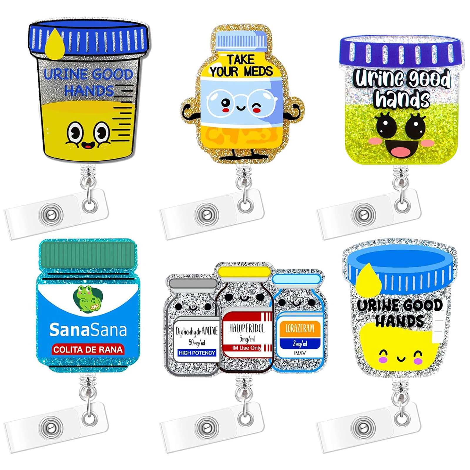アクリル薬瓶プルタブ回転プルタブ医師看護師伸縮証明書ボタンバッジリールプレゼント