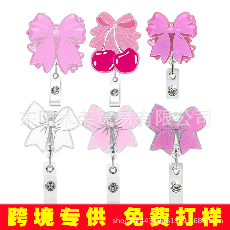 クロスボーダーの卸売ピンクの蝶結びの回転のゴムのプルタブのカバーの仕事証の学生の従業員のブランドのハンガー