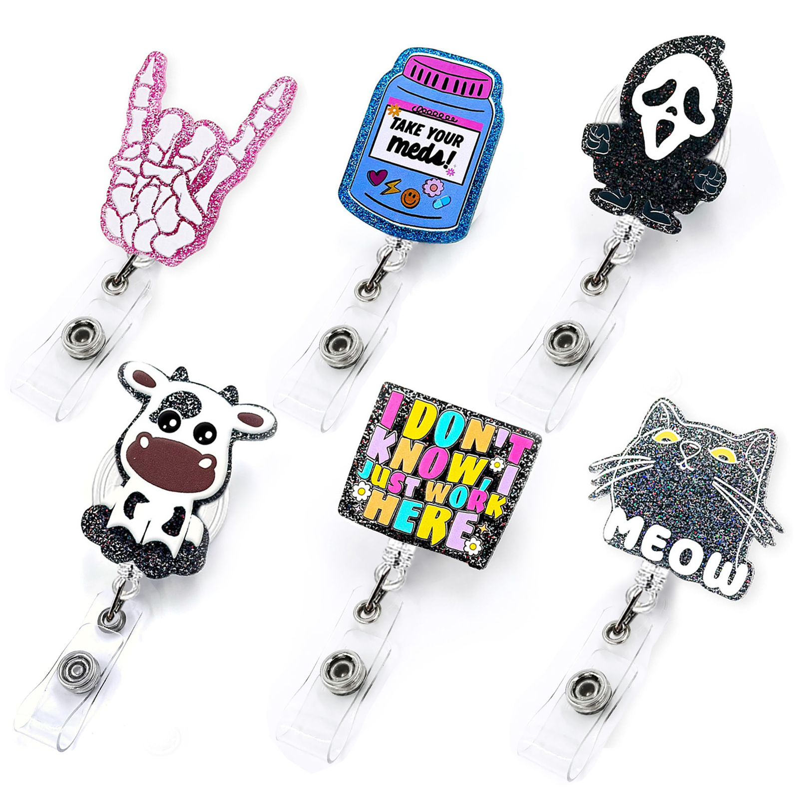 楽しいDIY装飾アクリル伸縮式バッジホルダー、医師、看護師、会社員、IDカード用、イージーロールバックル
