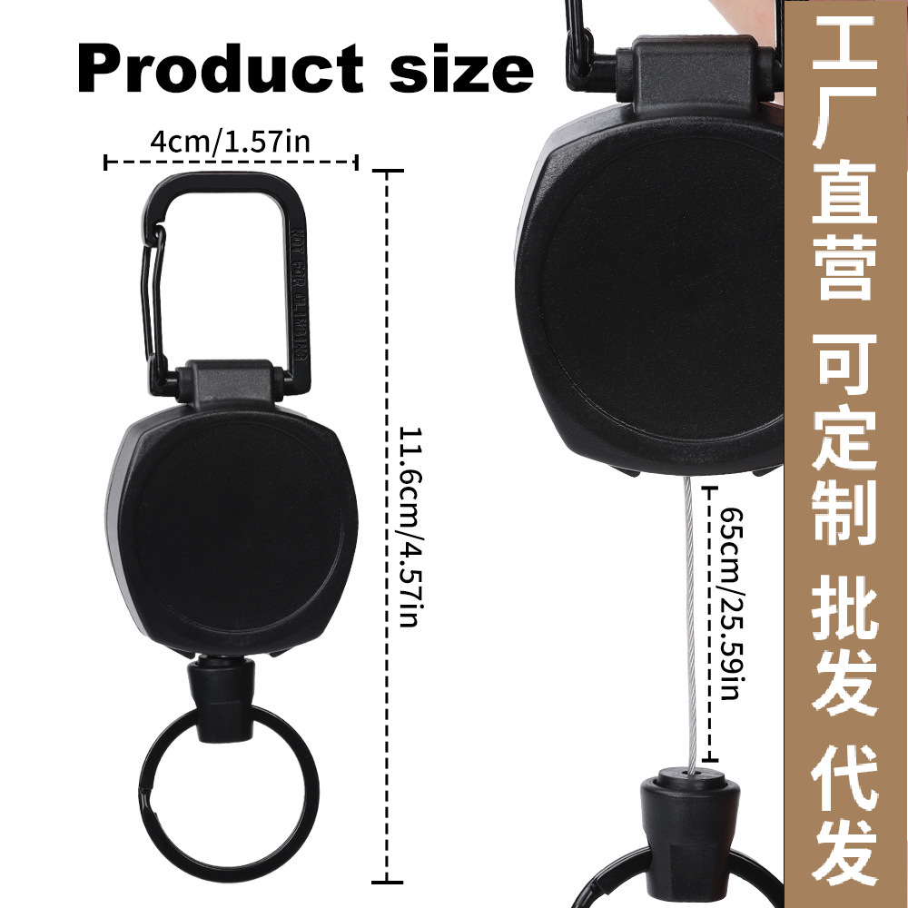 新商品のクロスボーダー人気4センチ全金属プルアップしやすいメッシュの皮条プルライン伸縮キーホルダー