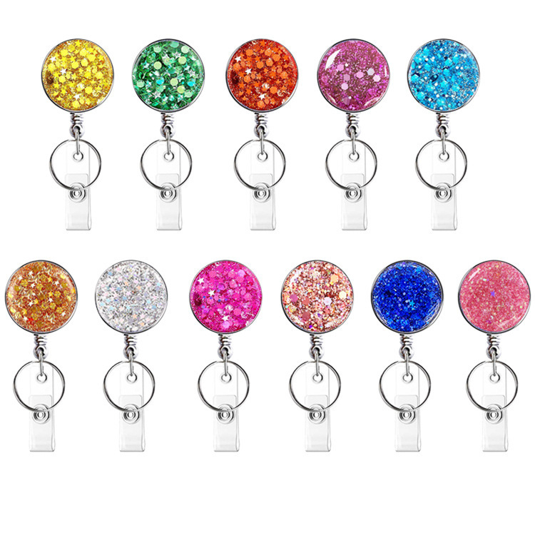 アクリルフラッシュ粉は回転伸縮可能なバッジリール医師看護師教師学生証明書ボタンを引くことができる