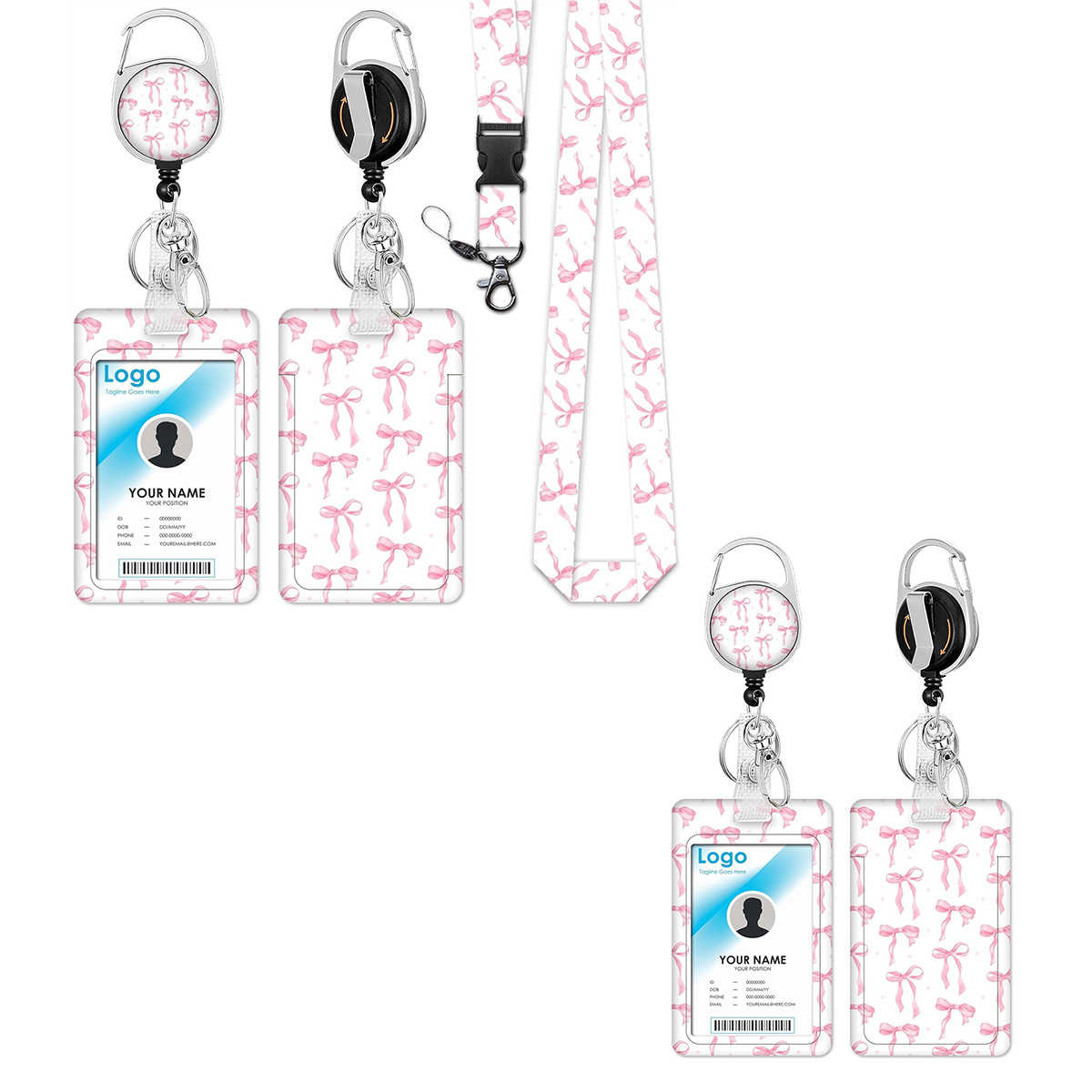 現物女性IDバッジクリップ蝶ネクタイ登山キーホルダー証明書カードカバー両面uvリボン首紐卸売り
