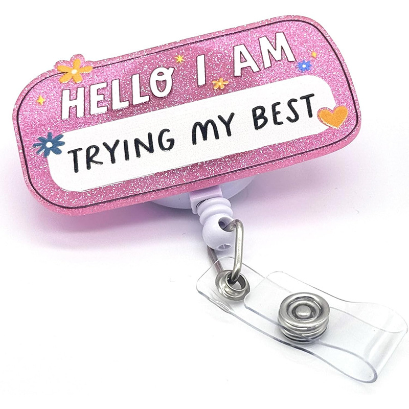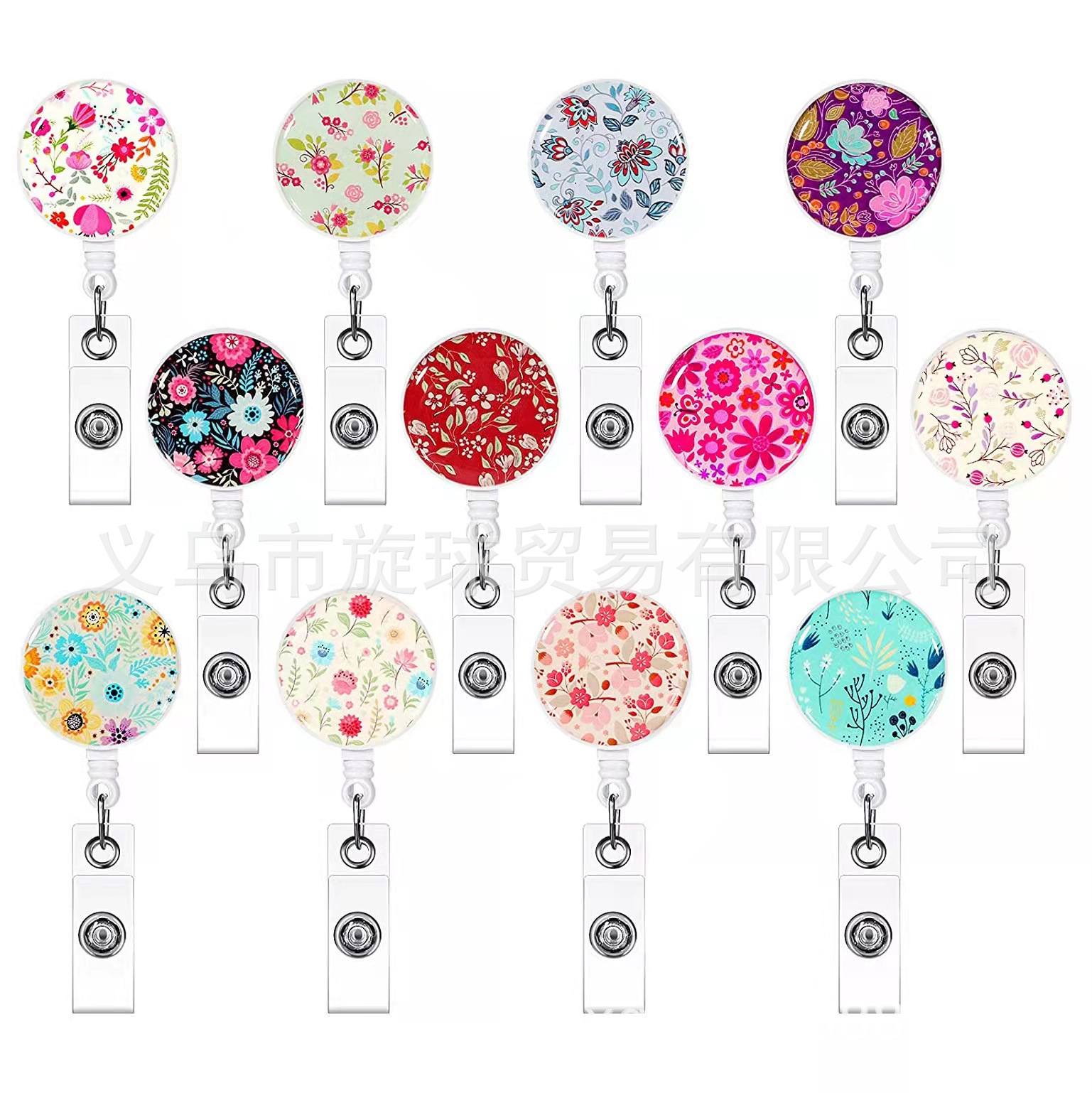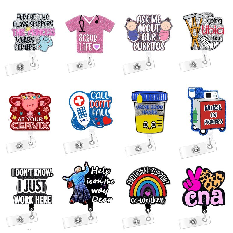 クロスボーダー英語フラッシュ粉アクリル回転可能ワニクリップ医師看護師学生伸縮バッジリール引きやすい