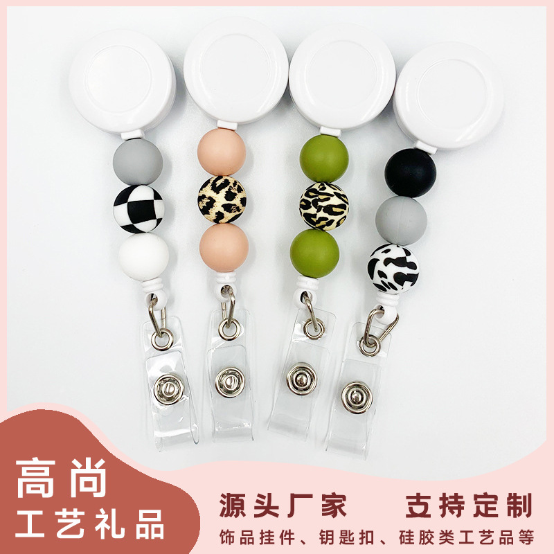 シリコーンビーズイージープルバックルバッジクリップ紛失防止キーホルダーバッジ ID バックルバッジ伸縮式ストラップ伸縮式