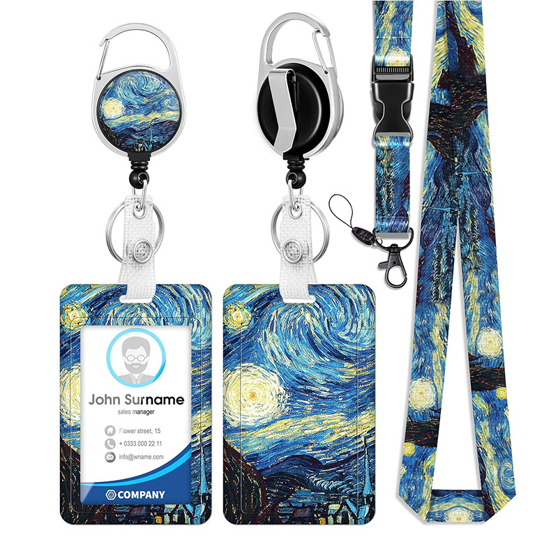 クロスボーダー星空伸縮可能バッジリール重型キーホルダー夜にバッククリップ付き証明書キーホルダー現物卸売り
