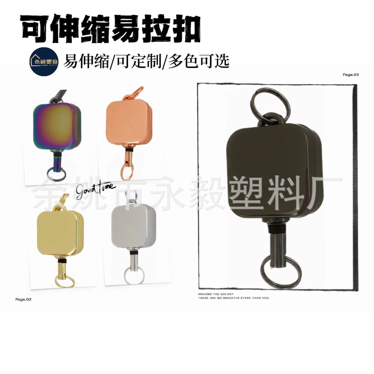 屋外用オールメタルイージーピックアップバックル、伸縮式バックル、ワイヤーキーホルダー、伸縮式カラビナ