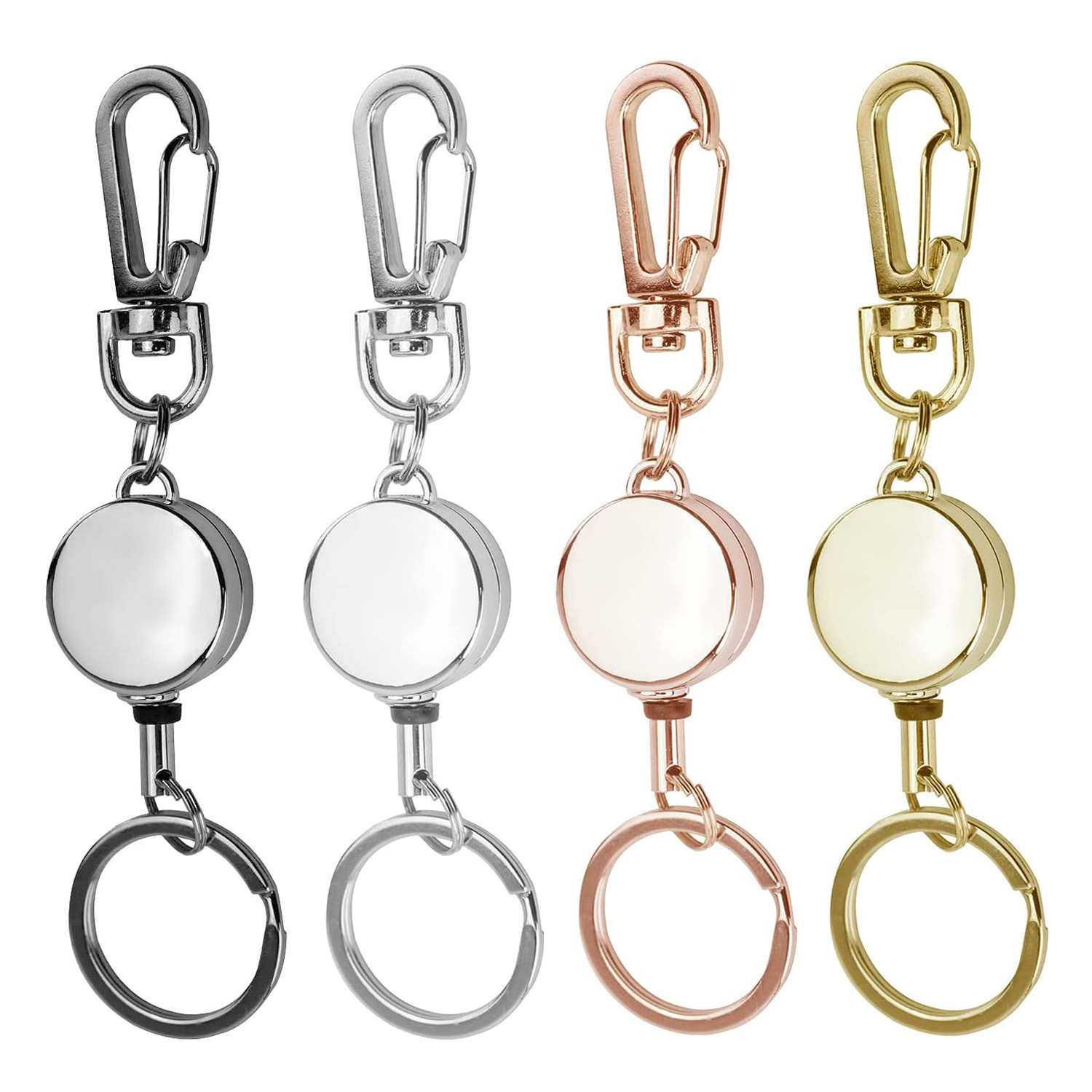 亜鉛合金の引きやすいボタンの円形のキーホルダーの背もたれ式の引きやすい仕事の証明は掛けます。盗難防止の伸縮ボタンをなくします。
