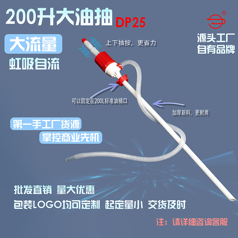 手動押圧サイフォン200Lドラム缶油抽出大流量吸引器PEプラスチック酸アルカリ漏れなし化学工業管