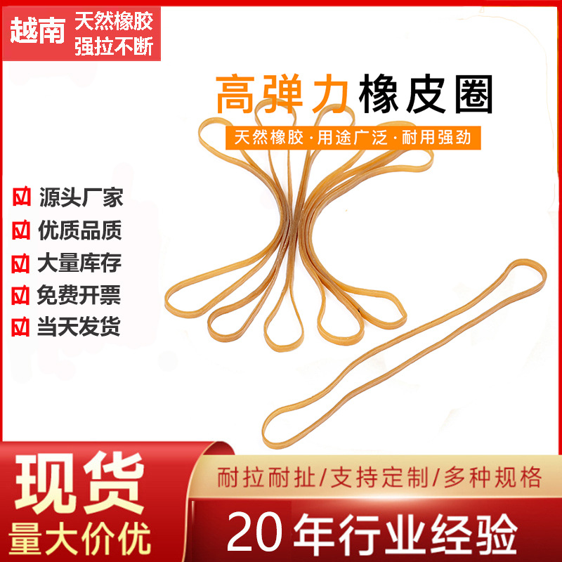 ベトナム製黄色ゴムバンド、使い捨て、耐引張性、連続牛革バンド、お金用の特別なフラット折りたたみ 6cm ゴムバンド