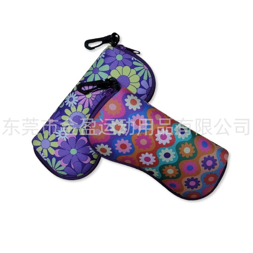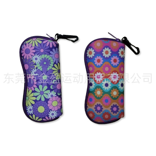アマゾンの人気潜水材料黒色眼鏡収納ケース傷防止防水紫色太陽花ファスナー眼鏡バッグ