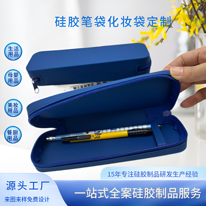 国境を越えた新製品の学生シリカゲル収納ケースはシンプルでロゴ模様の文房具袋防水シリカゲル筆袋を追加できる