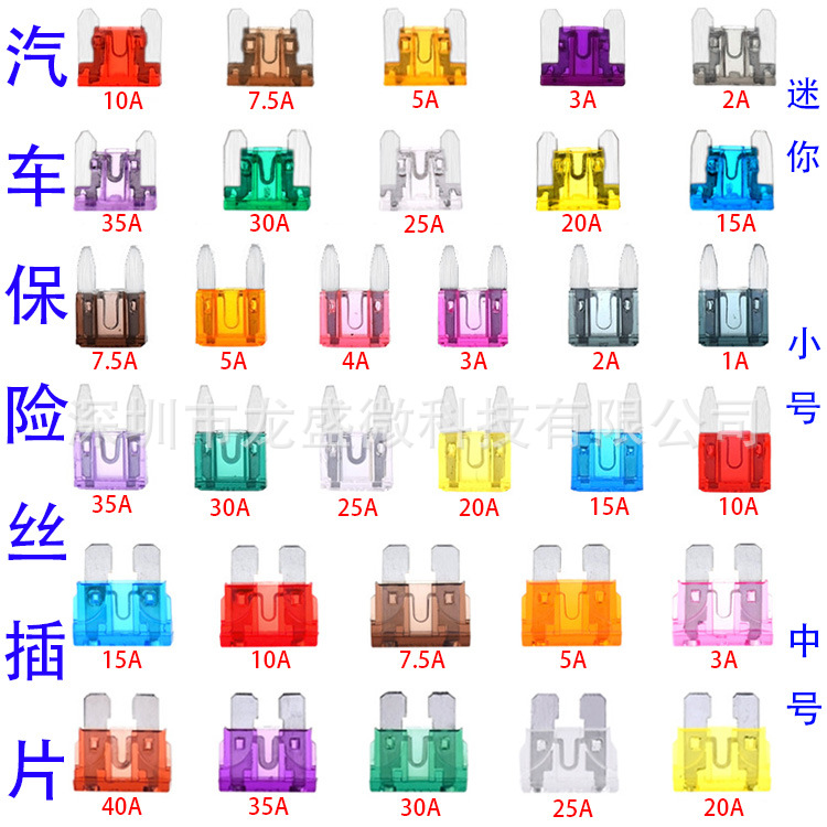 小型自動車ヒューズ、保険シート1/2/3/4/5/7.5/10/15/20/25/30/35/40a