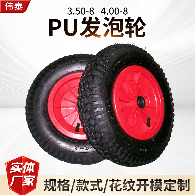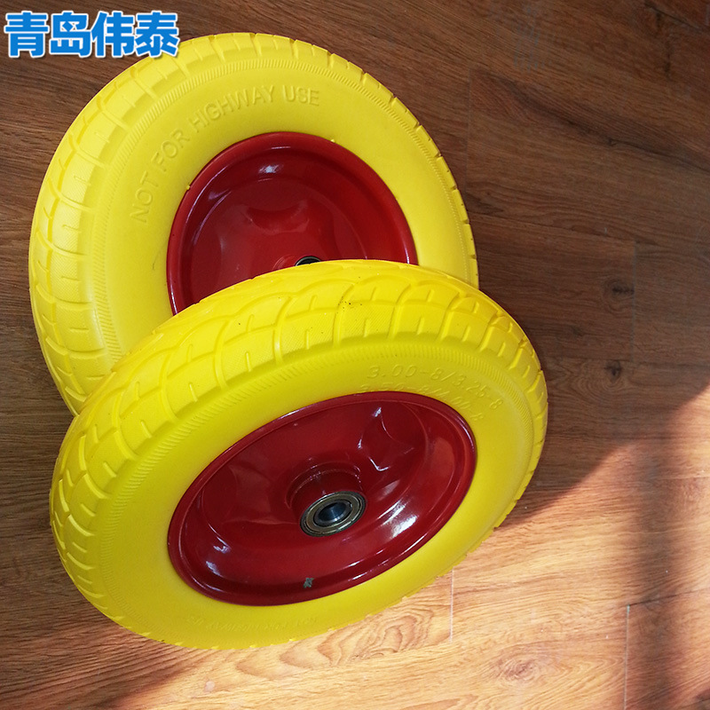 青島カラー 4.00-8PU 発泡ホイール手押し車ストレートパターンと宝石パターンツールカート発泡ホイール