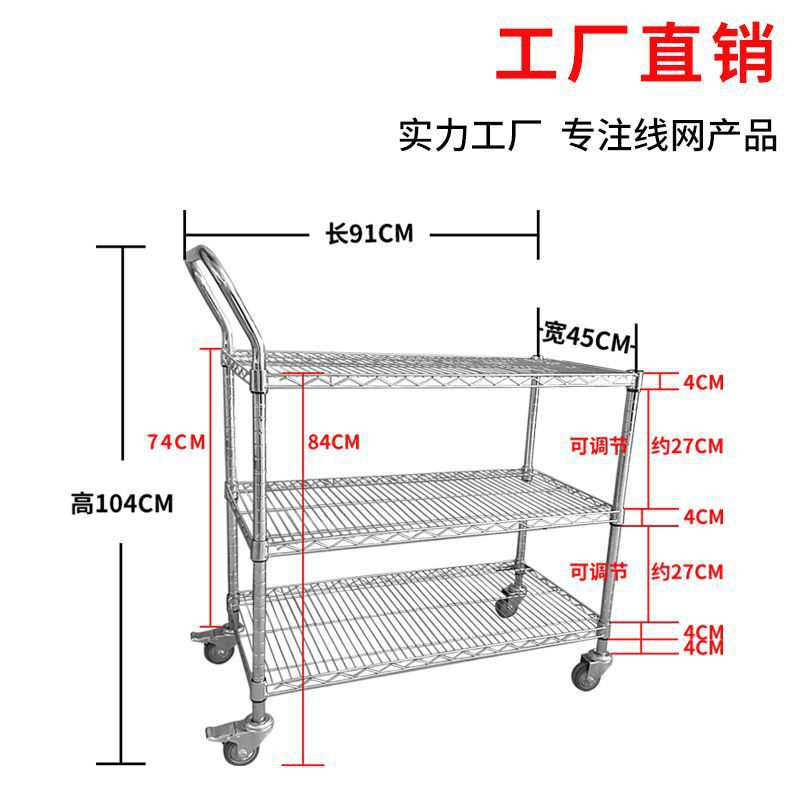 工場作業場用トロリーハンド三層トランスファーカートマテリアルラッククロームメッキ帯電防止ターンオーバーカートモバイルツールカート