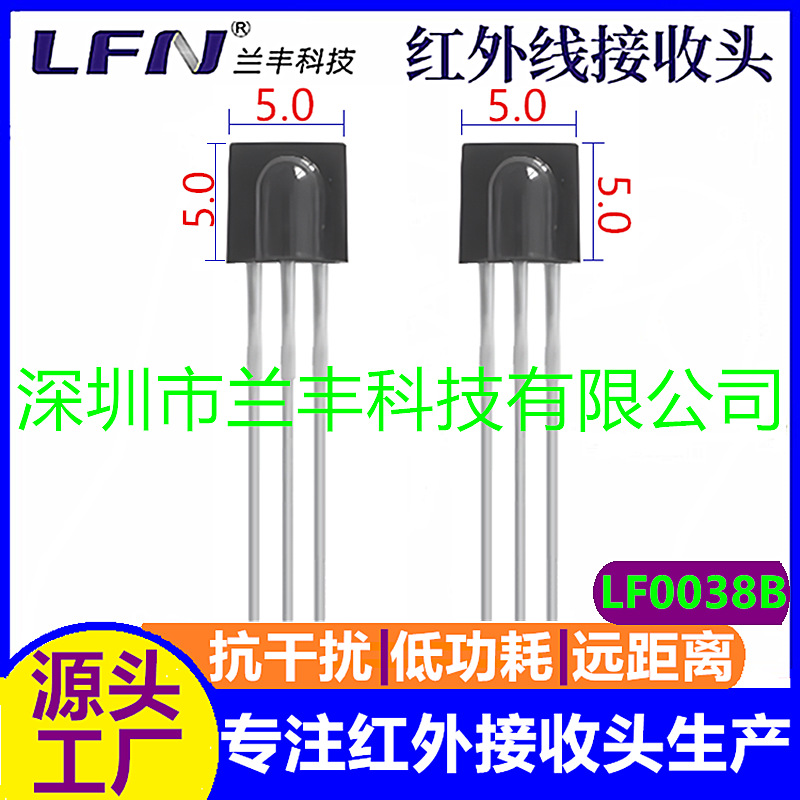 赤外線受信ヘッド LF0038B 小型鼻梁型 5X5 赤外線リモコン受信ヘッド 1.27 細足間隔受信ヘッド