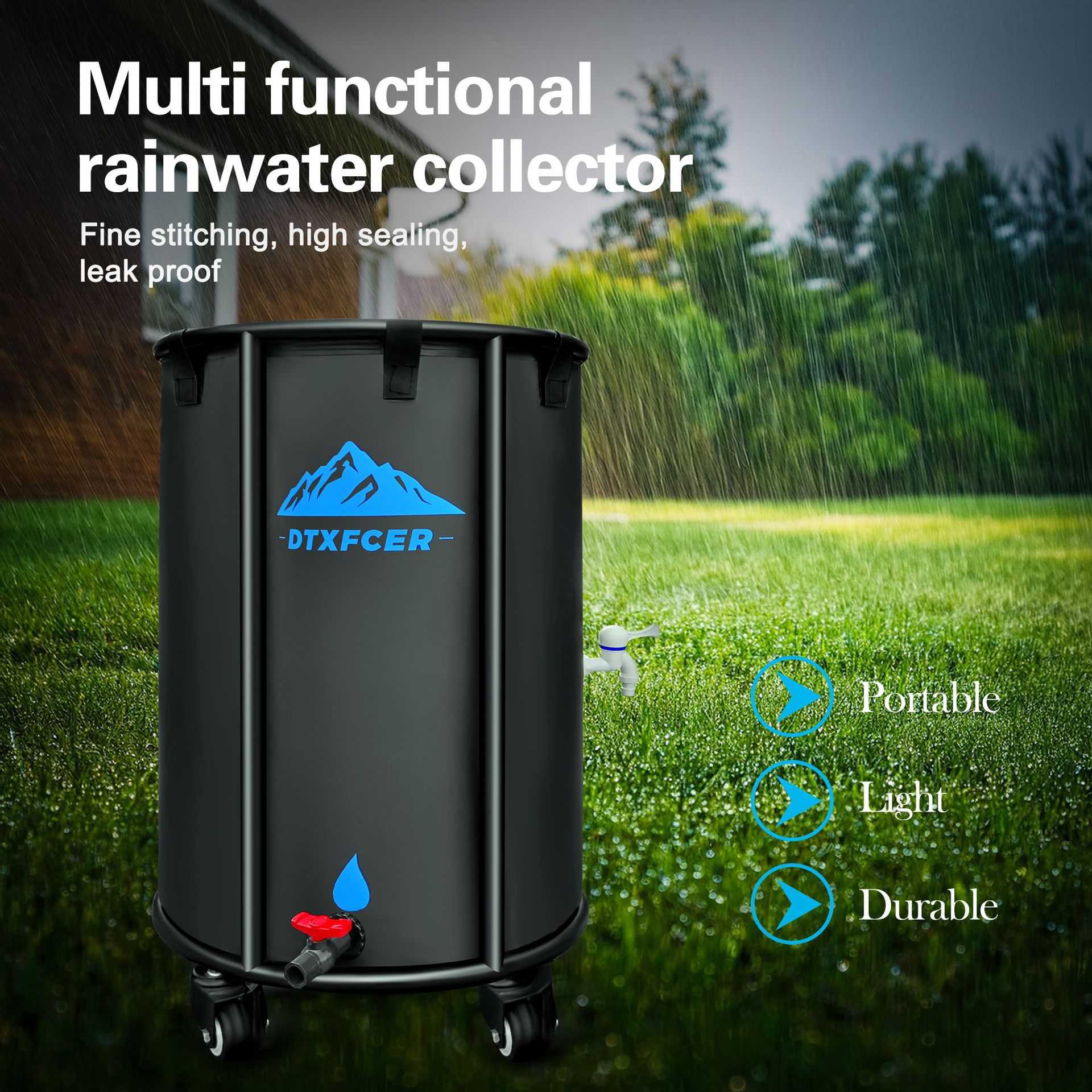 アメリカ特許移動可能PVC折り畳みバケツ園林雨バケツ雨水収集器車輪付き貯水