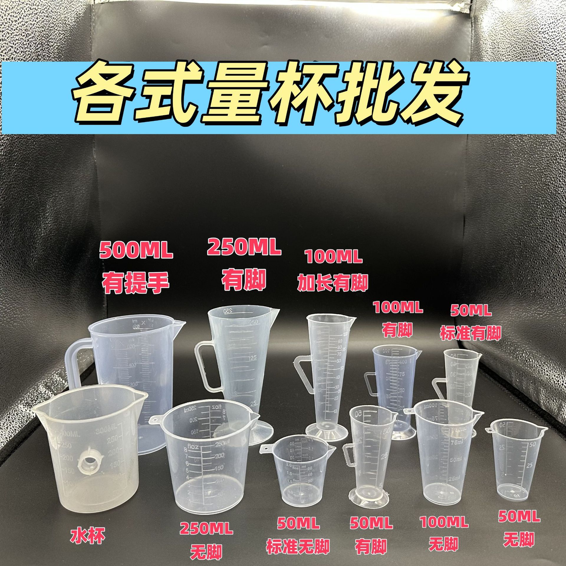 各種プラスチック目盛り付き計量カップ50ml、100ml、250ml、500mlの農薬計量カップ包装ツールを供給