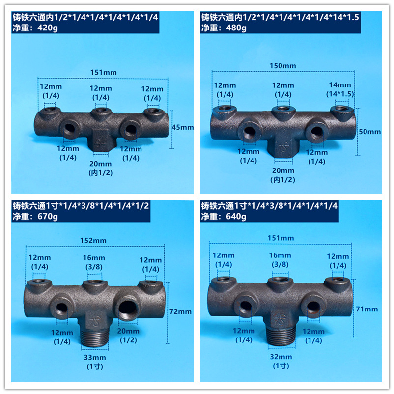 エアコンプレッサ部品鋳鉄六通ピストン式圧縮機用六通圧力計シートを供給する
