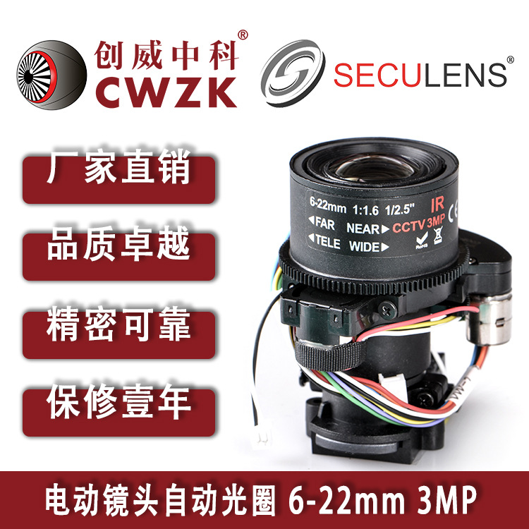 電動ズームレンズ6-22mm監視カメラ自動絞り部品超高精細金属ガラス3mp