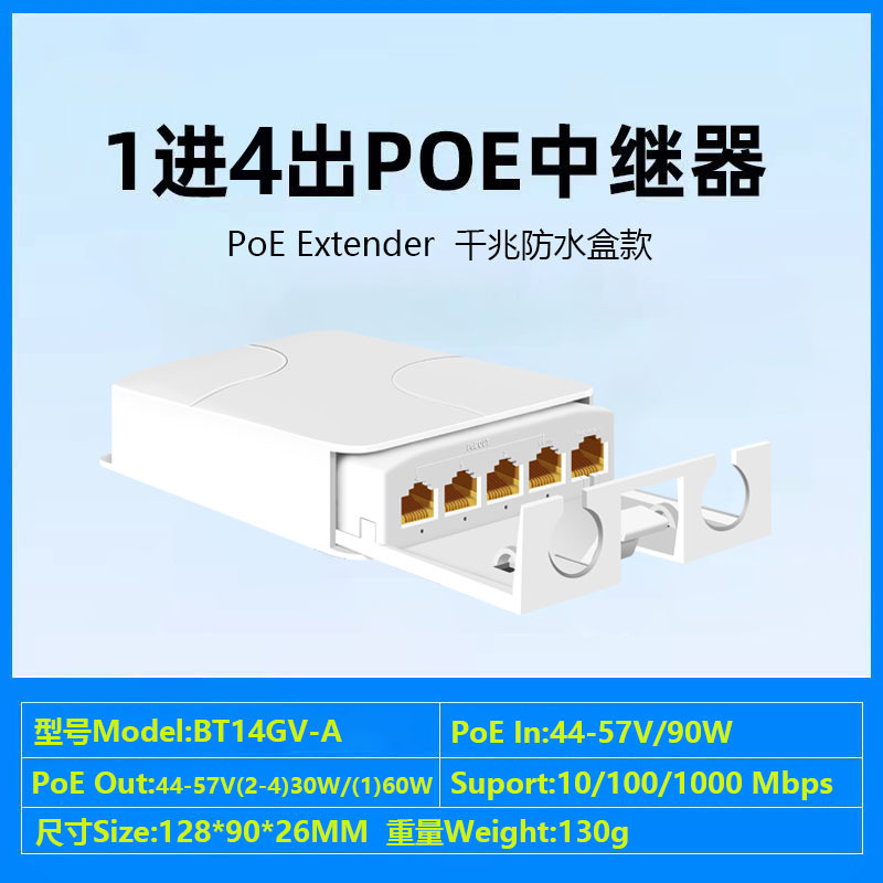 POE 1分4級聯宝直列POEスイッチ国標48vギガビット一進四出中継器防水ケース