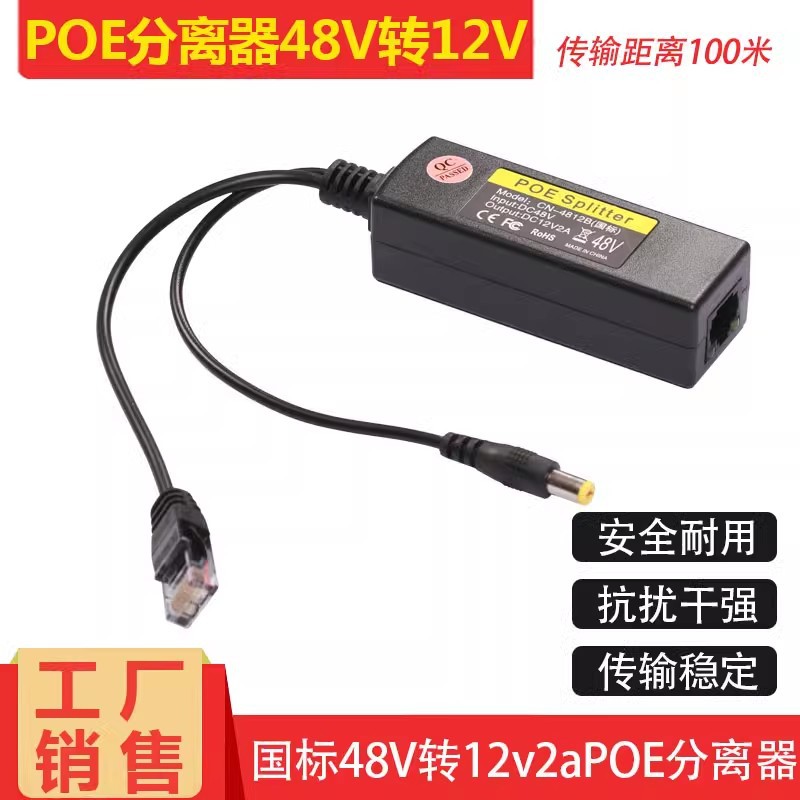 国標poe分離器通用大華海康ネットワークカメラ給電モジュールスイッチ48v回転12v2a
