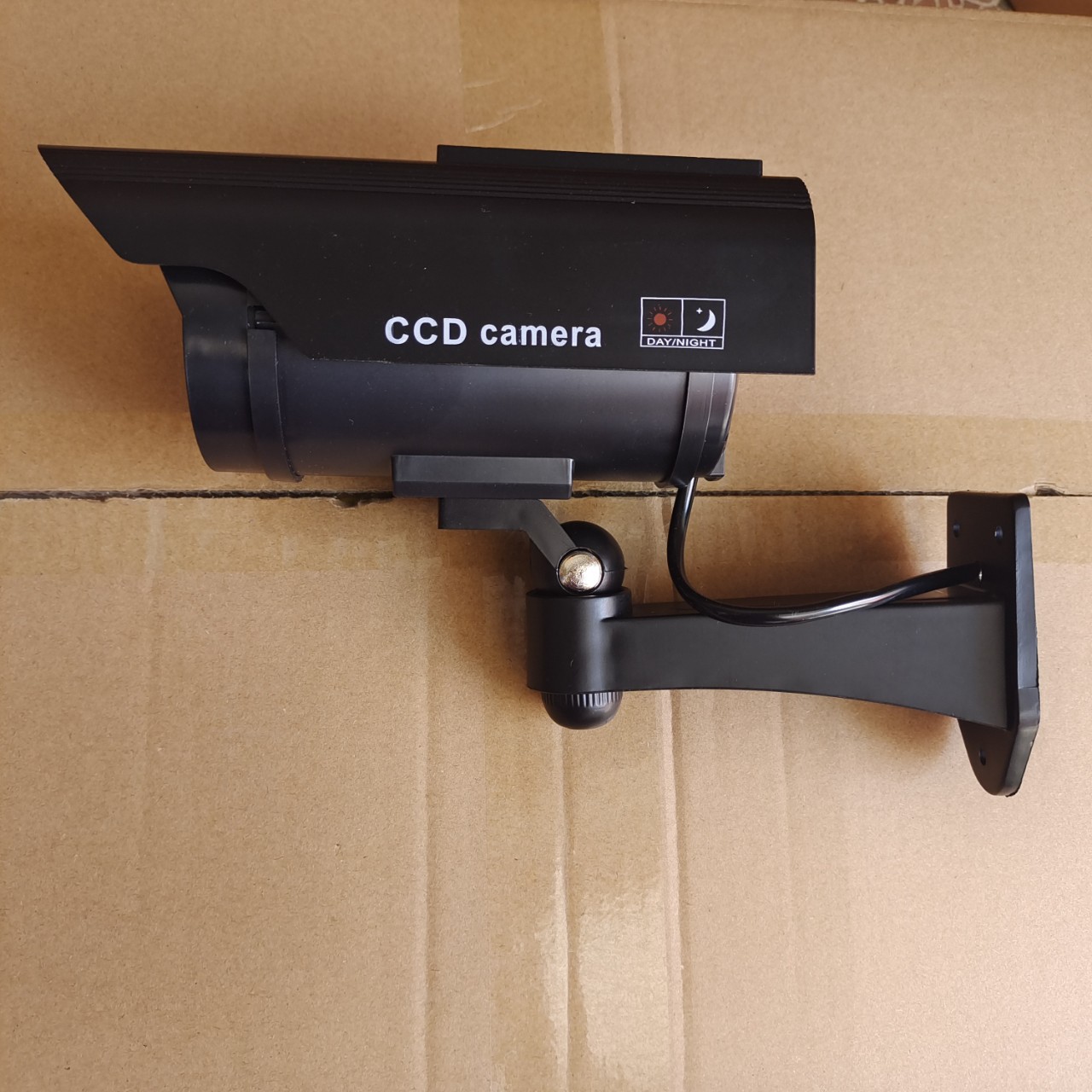 太陽エネルギーのシミュレーションのカメラの偽の監視は明かりをつけて黒色の銀色に点滅します。