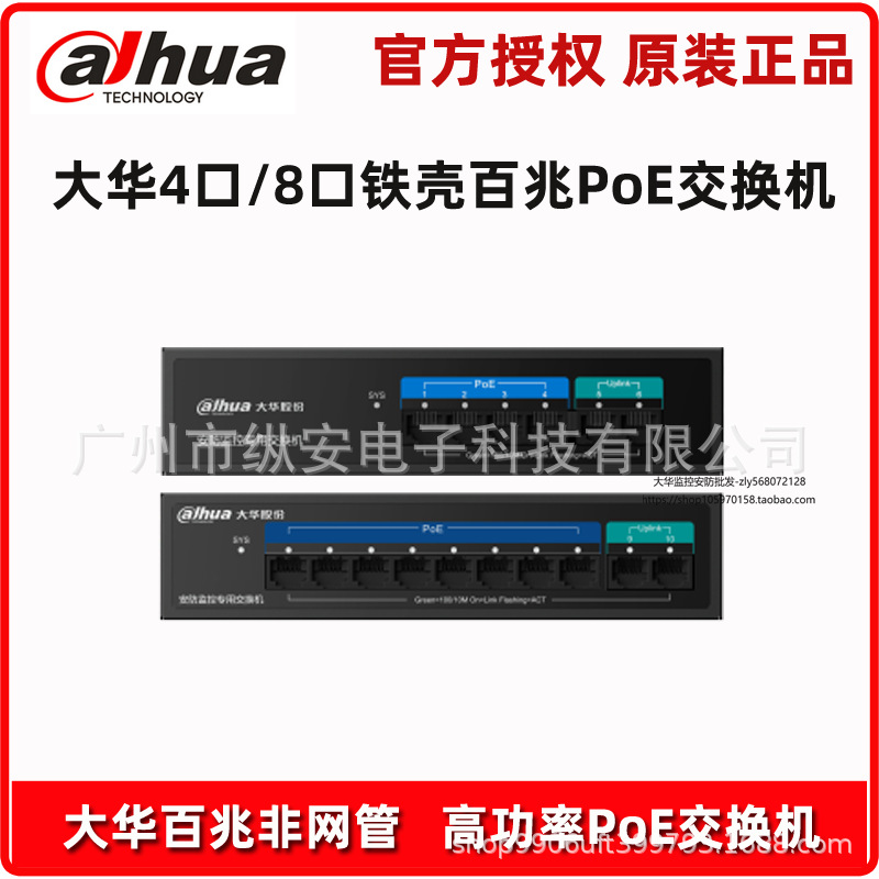 大華スイッチ4ポート8ポート百兆POE高出力DH-PS1100C-8ET2ET-130接続監視