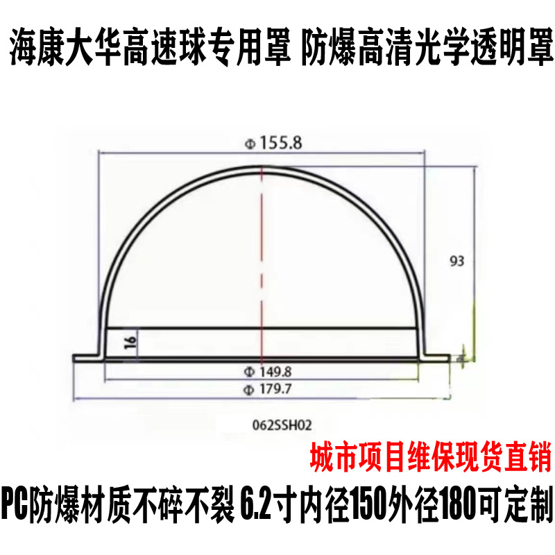 監視カメラハイビジョン透明カバー海康大華宇視ファーウェイ6.2インチ高速ボールカバー無人機防水/ダストカバー